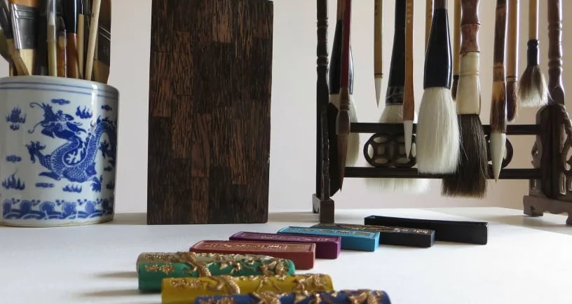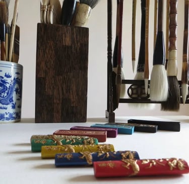 La calligraphie mongole repose sur des outils spécifiques, dont l’usage influence profondément le style, l’énergie et la qualité du tracé. Ces instruments ne sont pas de simples accessoires : ils sont le prolongement du geste et de l’intention du calligraphe.
